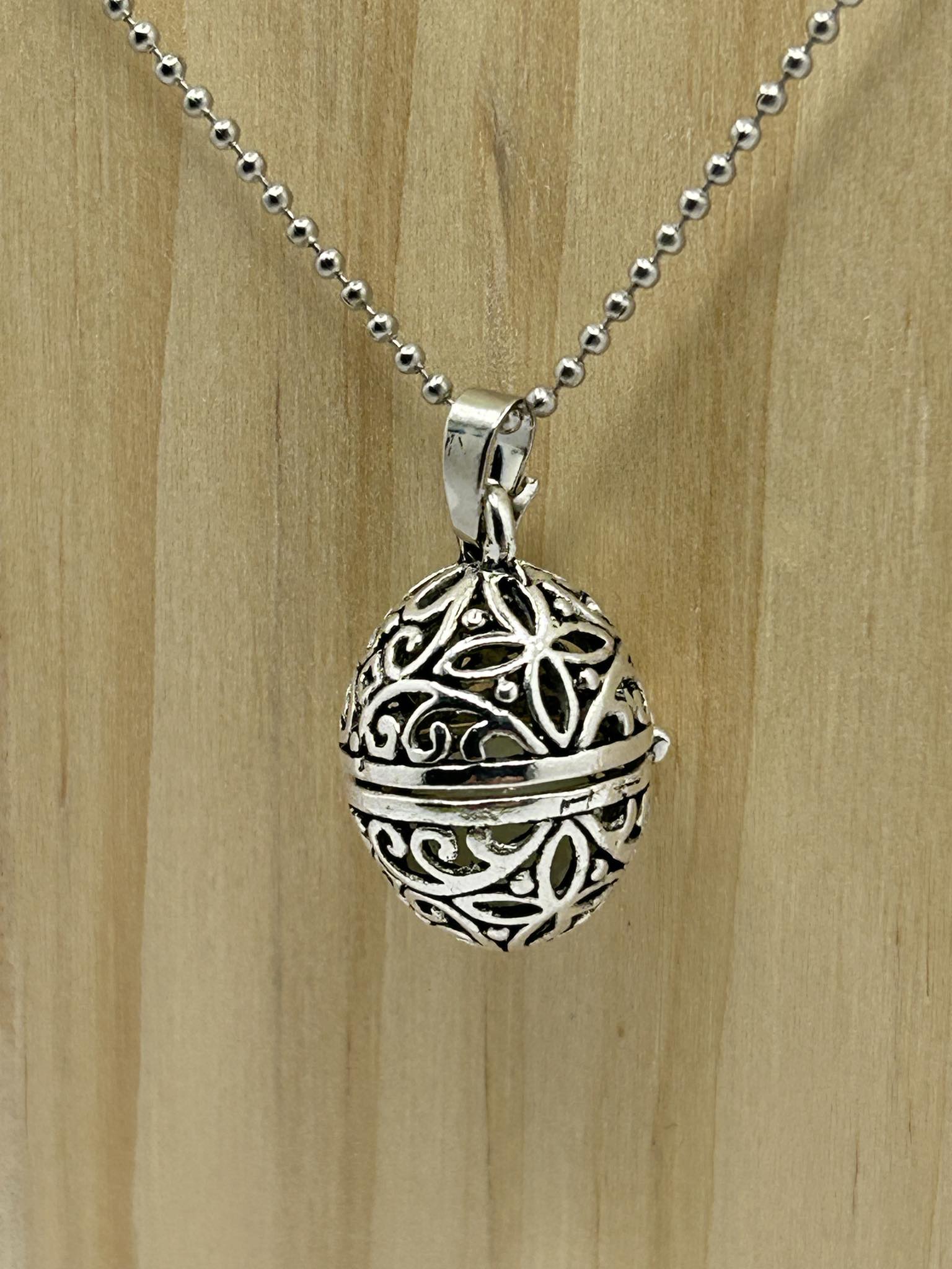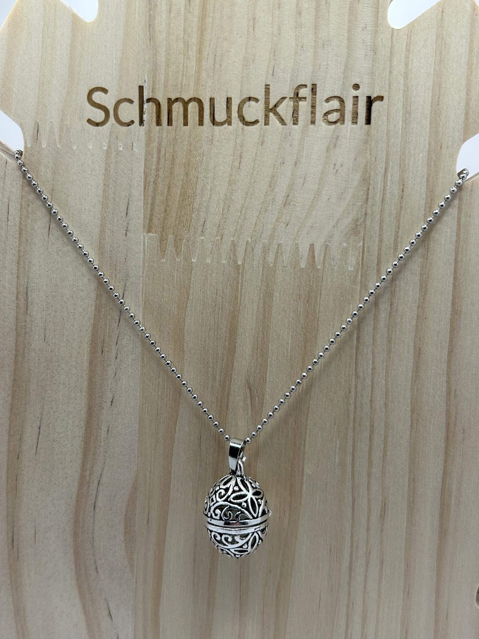 Leuchtende Eiform-Anhänger Kette – Floral Design, 45 cm, Silberfarben