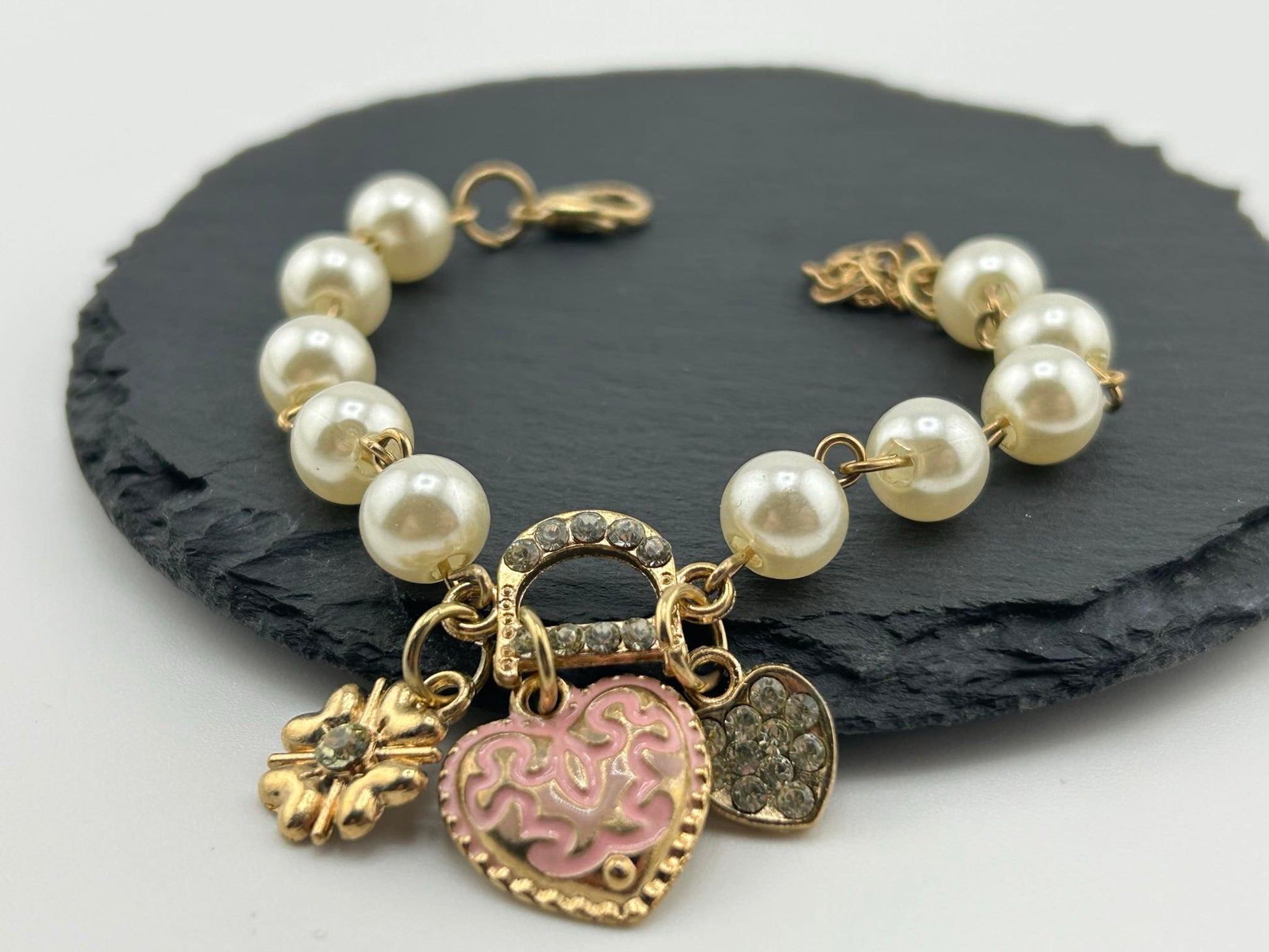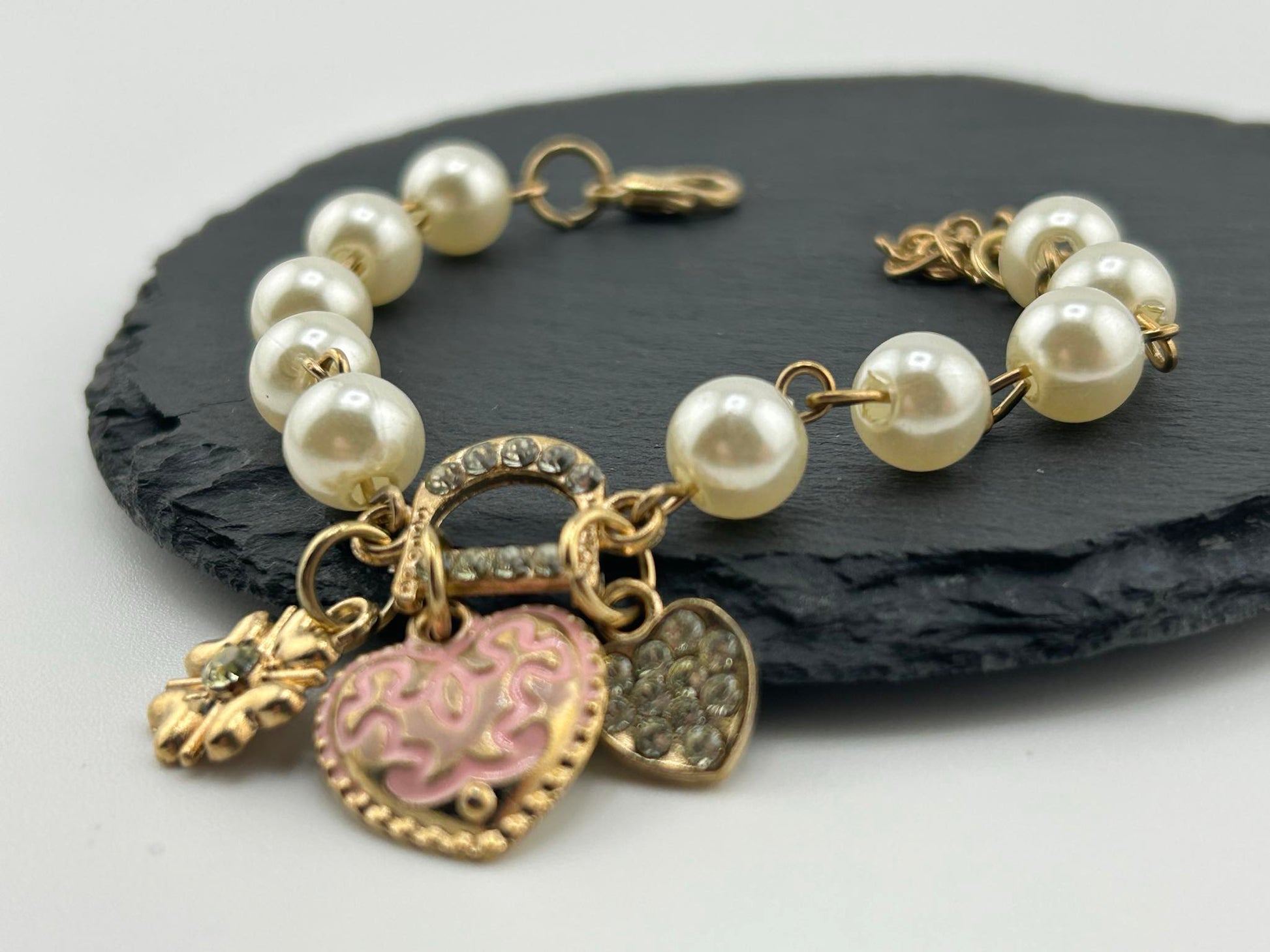 Verleihen Sie Ihrem Outfit mit dem exklusiven Old Heart Armband einen Hauch von Romantik und Eleganz. Die zarten Herzen und Perlen verleihen diesem Schmuckstück einen zeitlosen Charme, der Ihren Look aufwertet. Perfekt für besondere Anlässe oder als luxuriöses Accessoire für den Alltag.