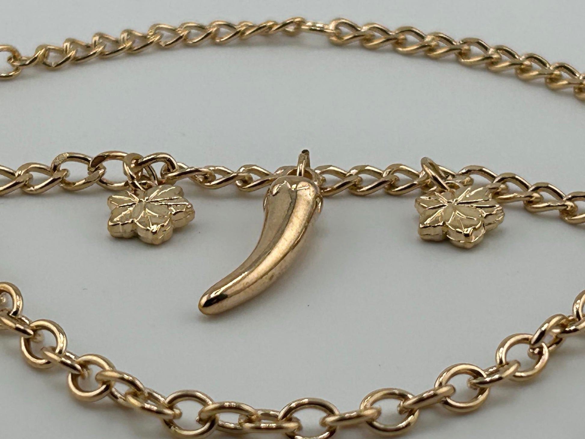 Entdecken Sie unser elegantes Fußkettchen mit einem exklusiven Peperoni Anhänger. Das goldfarbene Design verleiht Ihrem Look ein luxuriöses Flair. Perfekt für jeden Anlass und ein Must-Have Accessoire für die stilbewusste Frau. Lassen Sie sich von der Welt der Kunst und Mode inspirieren.